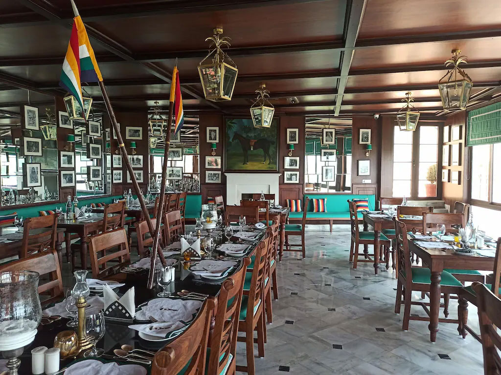 Dining: Famous for its open-roof terrace restaurant serving varied cuisines (Indian, Chinese, Continental) with scenic views, complemented by a Bar/Polo Lounge.