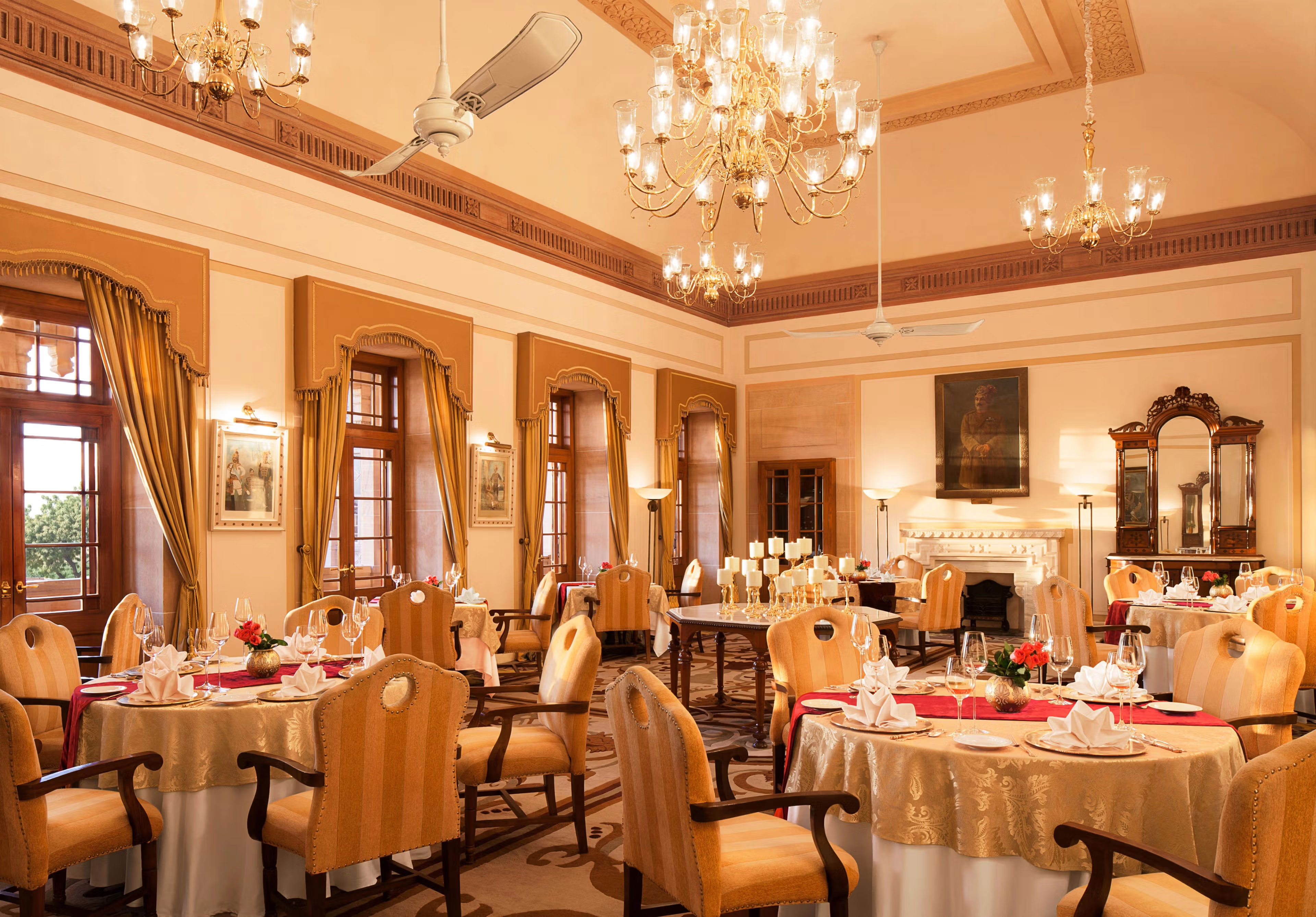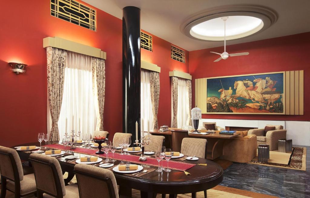Risala serves Continental and Indian fusion cuisine, while Pillars serves Rajasthani meals. Drinks can be enjoyed at The Trophy Bar.