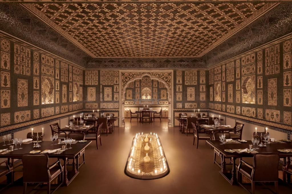 Discover timeless Indian luxury at Jamavar Restaurant, The Leela’s signature fine-dining restaurant. Formerly Mohan Mahal, Jamavar Jaipur reimagines royal gastronomy with elegance and artistry. Inspired by the intricate Jamavar shawls of Kashmir, the restaurant glows under candlelight, shimmering with 3,50,000 hand-cut Thikri mirrors and 18-carat gold leafwork, echoing the grandeur of Jaipur’s Sheesh Mahal.
