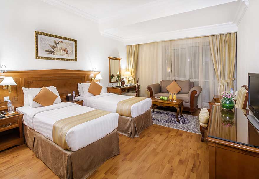Occupying a convenient position in Bur Dubai and just minutes from the World Trade Centre, the stylish Grand Excelsior - Bur Dubai has 8 dining options, an expansive spa and a rooftop pool. This modern property features rooms which are contemporary in design with an Arabian touch. All rooms and suites offer the guest a range of modern amenities including flat-screen TVs and interactive entertainment systems. The Grand Excelsior - Bur Dubai offers a choice of 8 food and beverage outlets. Guests can enjoy a wide range of international cuisine, including specialty Indian, Arabic and continental buffet restaurants. The Grand's modern gym features cardiovascular equipment and free weights. After a work out, guests can relax at the spa, which has a Turkish bath, a hot tub and a sauna. A range of full-body massages, facials and pedicures are also offered.