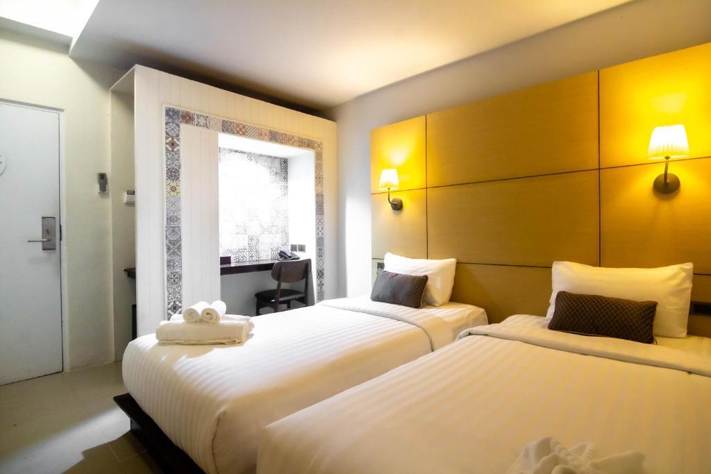 Comfortable Accommodations: Montree Phuket Hotel in Phuket offers air-conditioned rooms with private bathrooms, city views, and modern amenities. Each room includes a tea and coffee maker, refrigerator, and free toiletries.