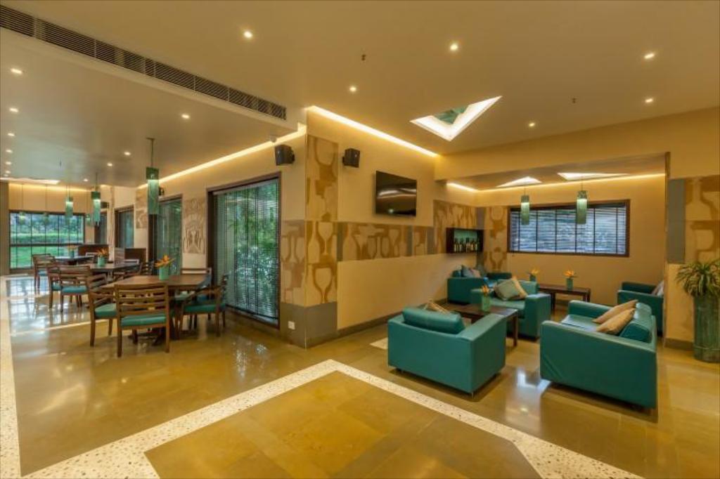 Dining: Features the Mulberry Tree restaurant offering diverse cuisines (Gujarati, Punjabi, Chinese) and the Risa Bar & Cafe.