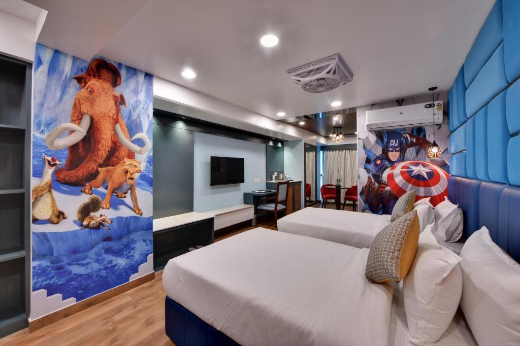 Comfortable Accommodations: The Fern Habitat in Jaipur offers comfortable rooms with air-conditioning, private bathrooms, and city views. Each room includes a work desk, TV, and free toiletries.